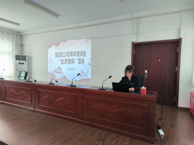 集团公司青年宣讲团成员、彭富运营公司行政管理部职工王婵季子对集团《推行“全员皆商’实施业绩“论斤称”工作意见》和能源集团等15家公司共计18个文件进行宣讲,将工作要求、考核方法及各公司项目(产品)情况、激励措施、实施步骤向全体职工一一说明。宣讲结束后,就“全员皆商”宣讲内容进行现场答疑、就集团公司改革发展等方面进行“面对面”意见建议征集。彭富运营公司对全体干部职工提出工作要求。