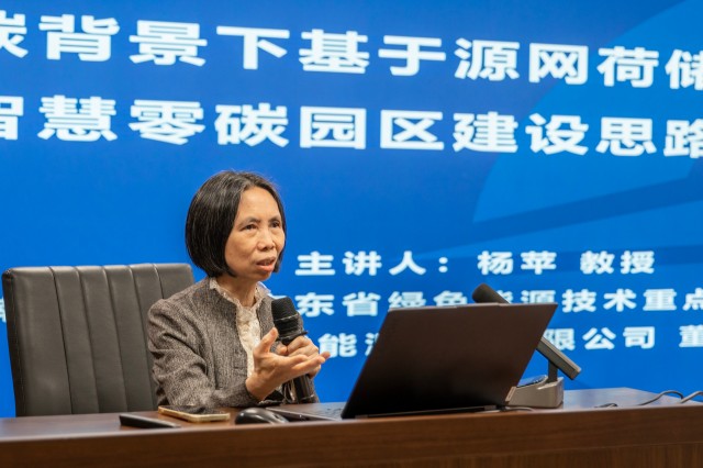 在授课过程中,杨苹教授系统阐述了源网荷储一体化的基本概念、系统架构、运行机制及其在提升能源效率、保障电力安全、促进新能源消纳方面的重要作用。结合典型案例,重点讲解如何运用源网荷储一体化模式,统筹园区能源供应、电网运行、负荷管理和储能配置,实现园区的低碳零碳运行,打造绿电园区。最后,结合徐州产业特点、资源禀赋,共同探讨本地区推动源网荷储协同互动、建设零碳园区的潜在路径与策略建议。